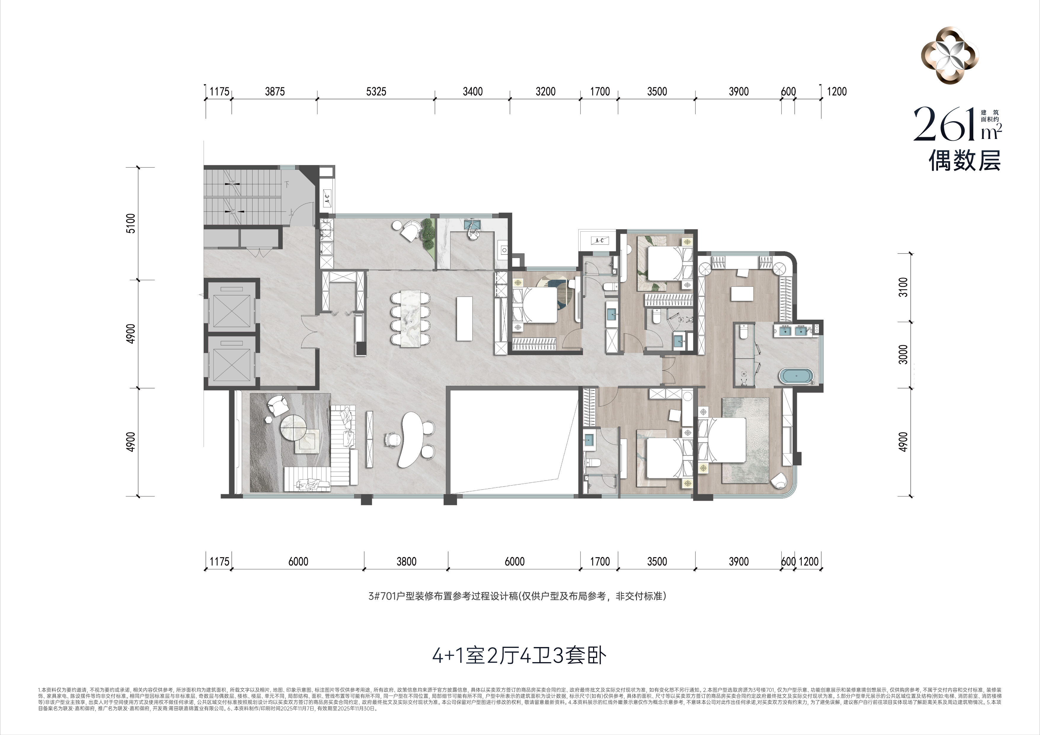 261(偶数层)㎡ 4室2厅1厨4卫 261.00㎡