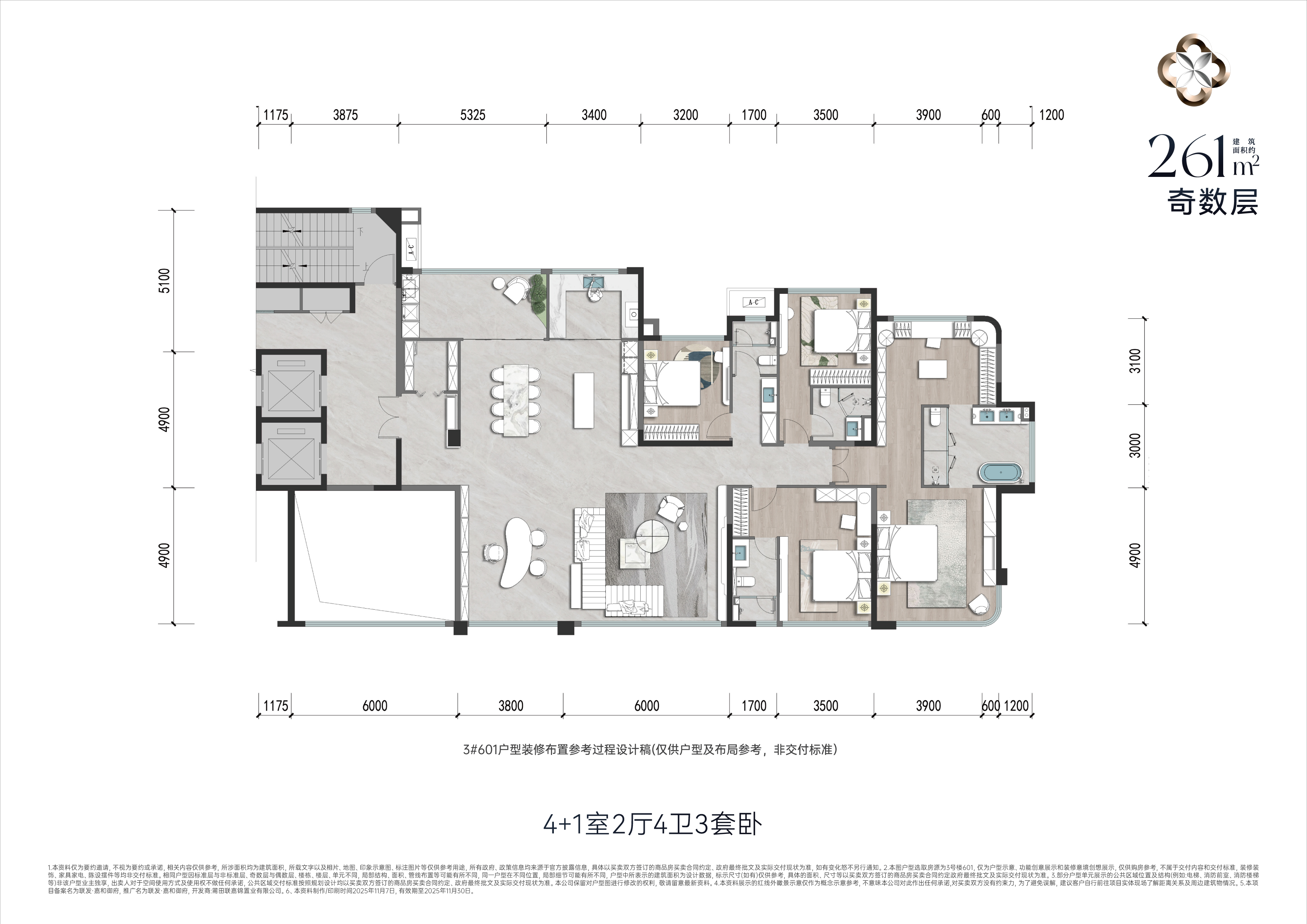 261㎡(奇数层) 4室2厅1厨4卫 261.00㎡